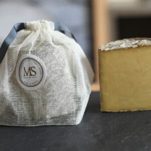 Chaque tomme est frottée et retournée à la main toutes les semaines, pour proposer un affinage entre 3 et 5 mois en cave souterraine. Un travail minutieux et long, qui se mesure et s’apprécie lors de la dégustation où se dégage des arômes de noisette, réglisse et fruit des bois.